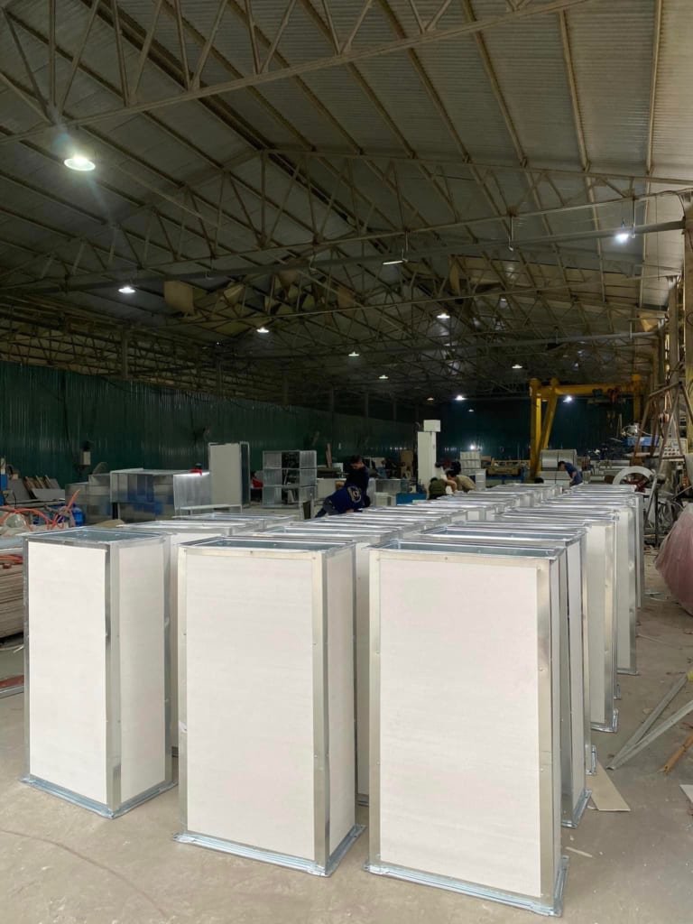 - Lớp trong cùng là ống gió làm bằng chất liệu tôn mạ kẽm Z08 với độ dày tối thiểu là 0.75mm;